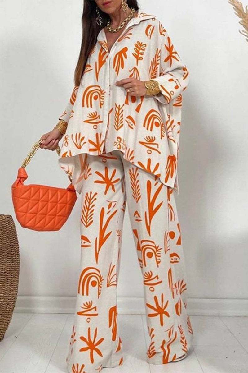 Casual Print Solid Printing Turndown Collar Three Quarter Two Pieces