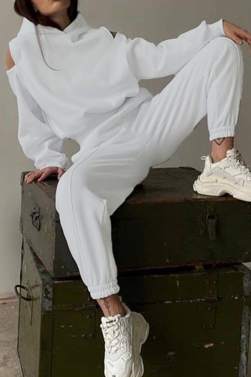 Casual Simplicity Solid Patchwork Hooded Collar Long Sleeve Two Pieces(4 Colors)