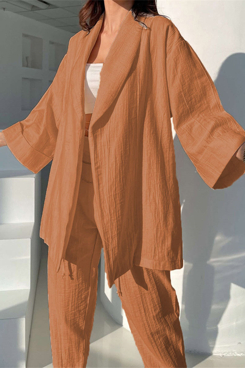 Casual Simplicity Solid Turndown Collar Long Sleeve Two Pieces