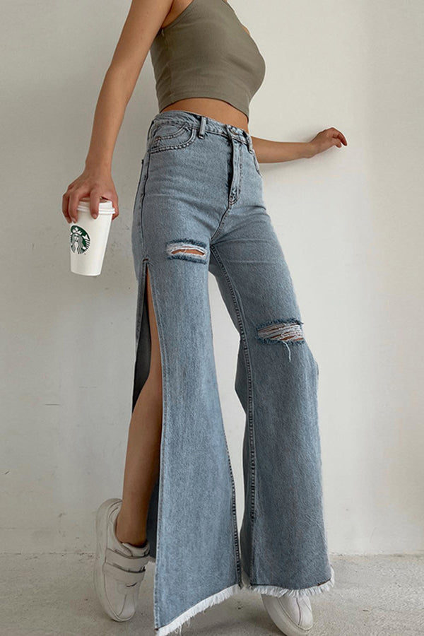 Casual Slit Ripped Jeans