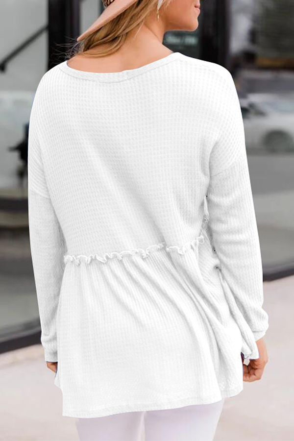Casual Solid Patchwork Buckle V Neck Tops(7 Colors)