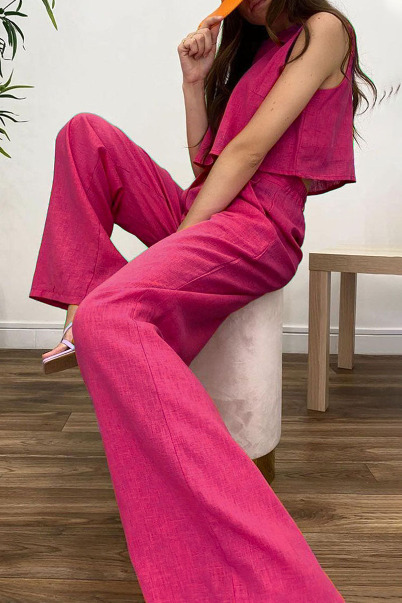 Casual Solid Patchwork O Neck Sleeveless Two Pieces
