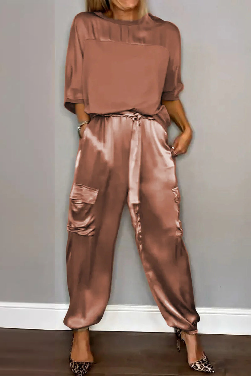 Casual Solid Pocket O Neck Short Sleeve Two Pieces