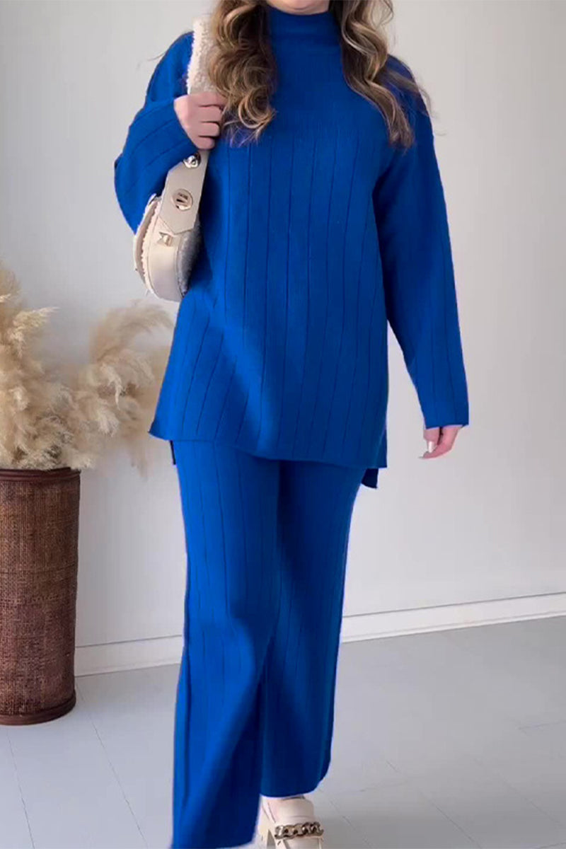 Casual Solid Slit O Neck Three Quarter Two Pieces