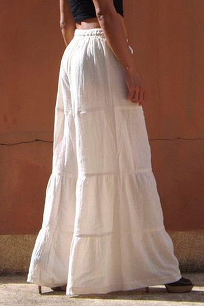 Casual Solid Split Joint Frenulum Loose Wide Leg Patchwork Bottoms(5 colors)