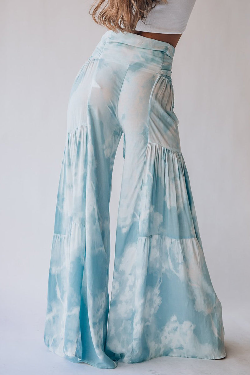 Casual Street Print Fold Loose High Waist Wide Leg Bottoms(19 Colors)