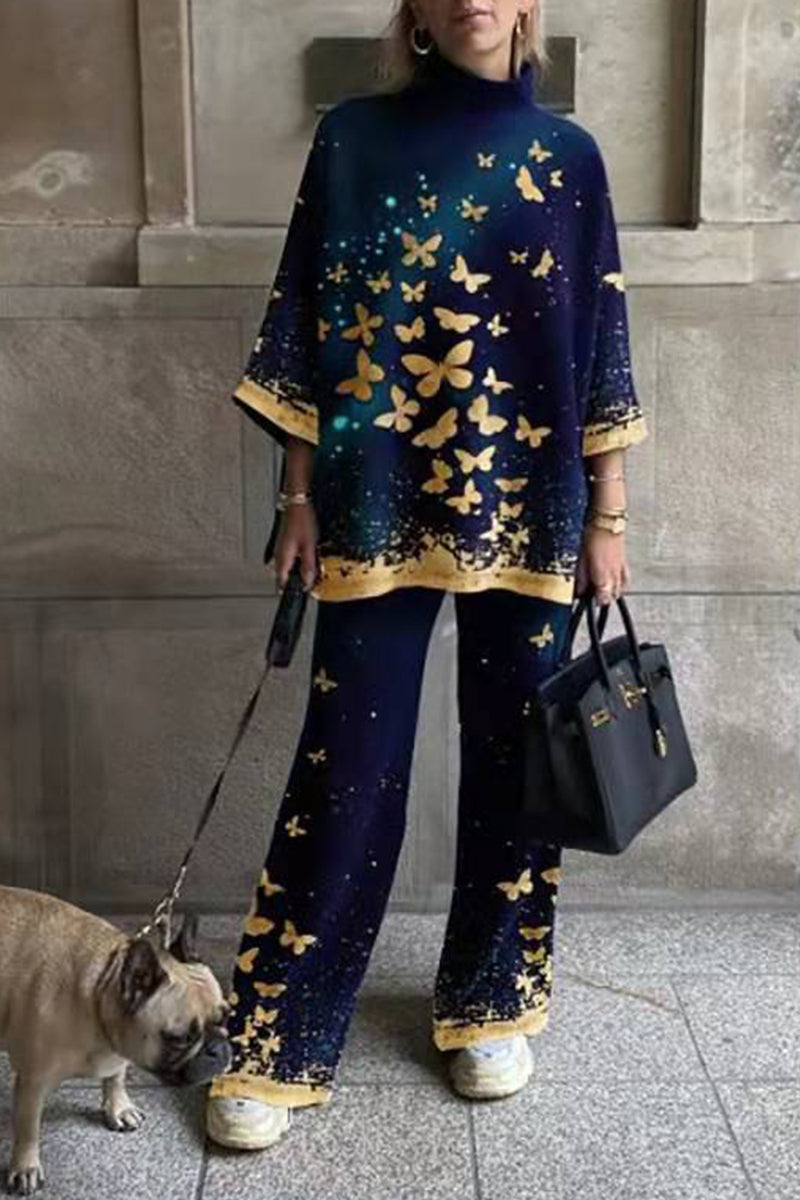 Casual Street Half A Turtleneck Three Quarter Two Pieces(5 Colors)