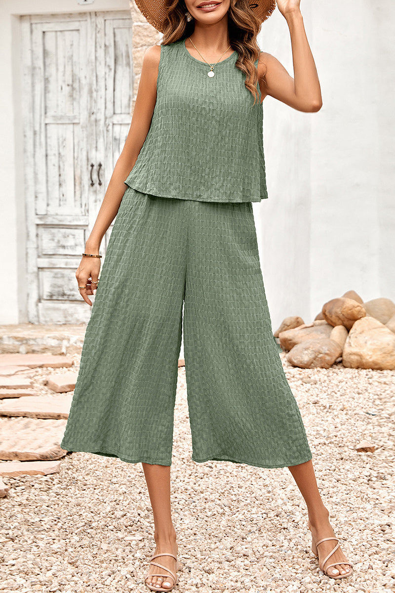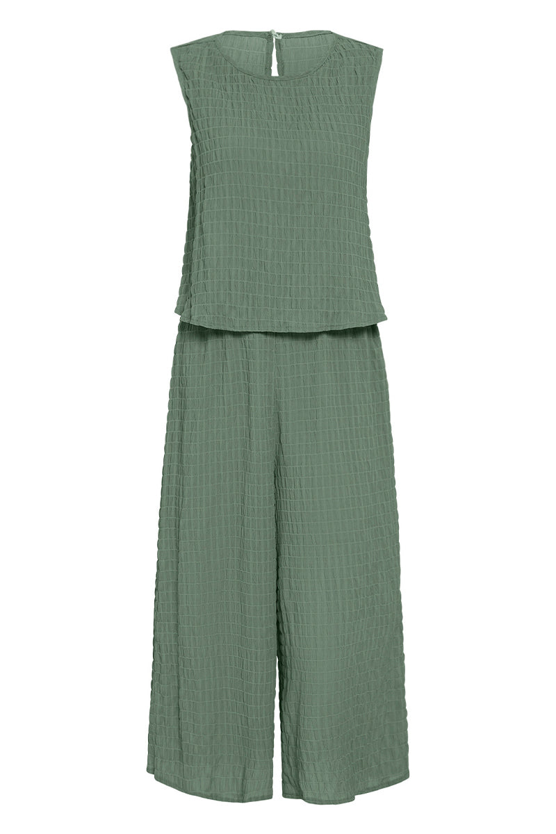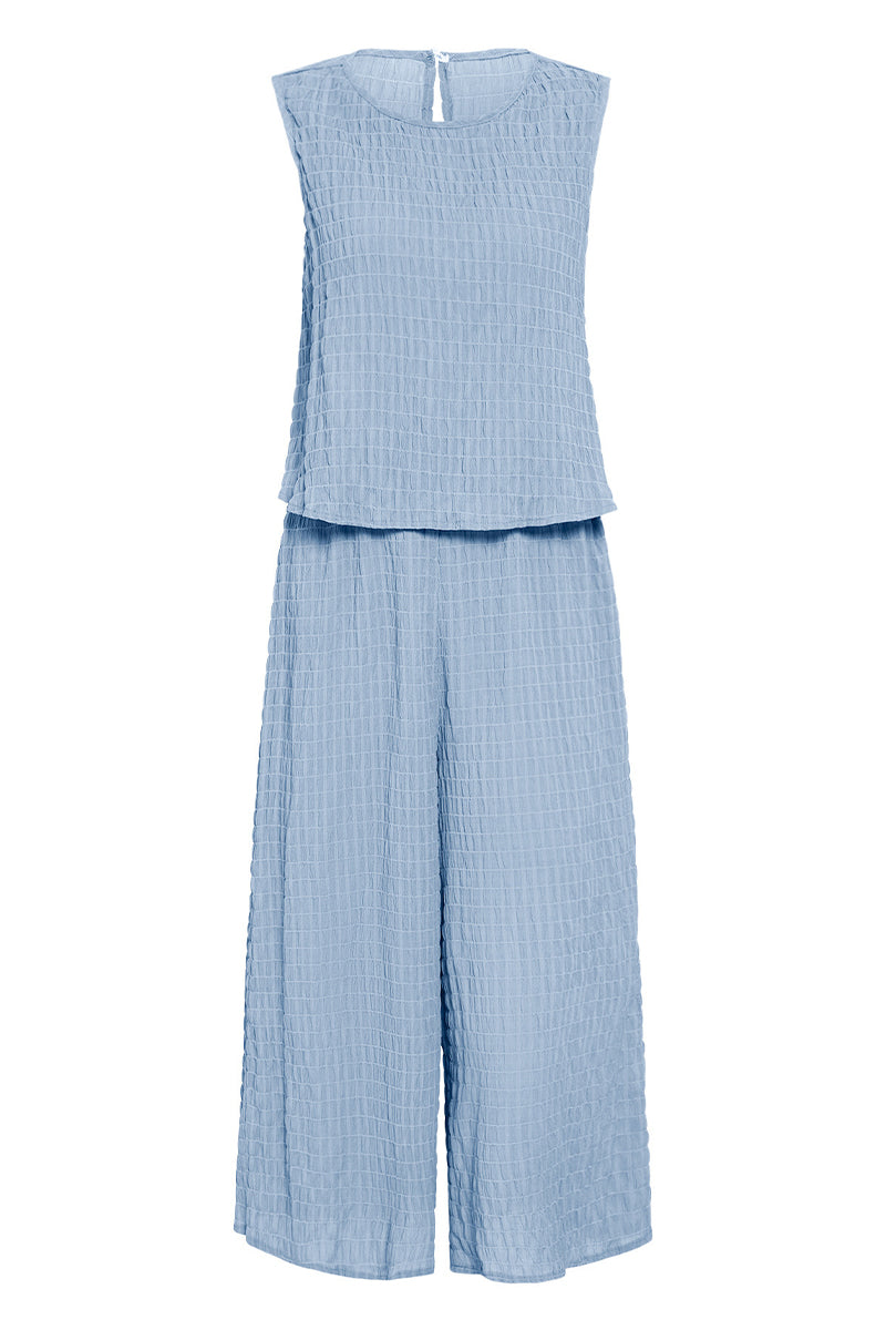 Casual Vacation Simplicity Solid Fold O Neck Loose Jumpsuits(3 Colors)