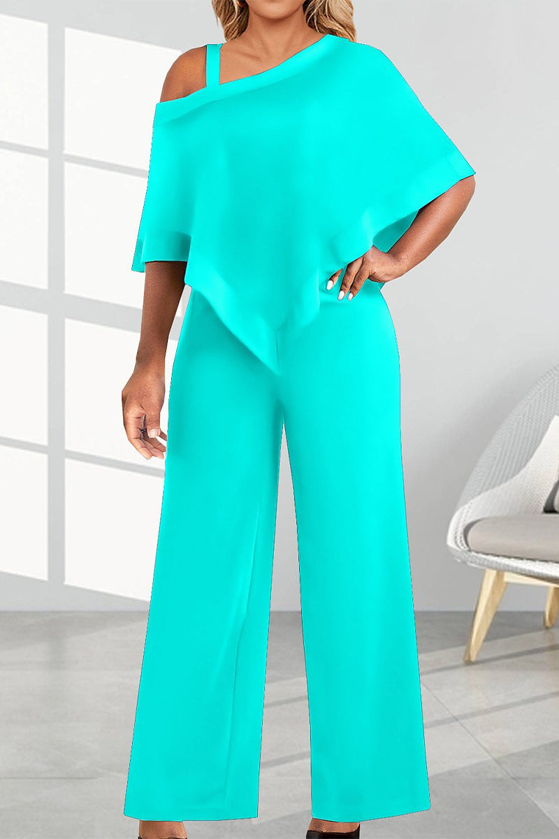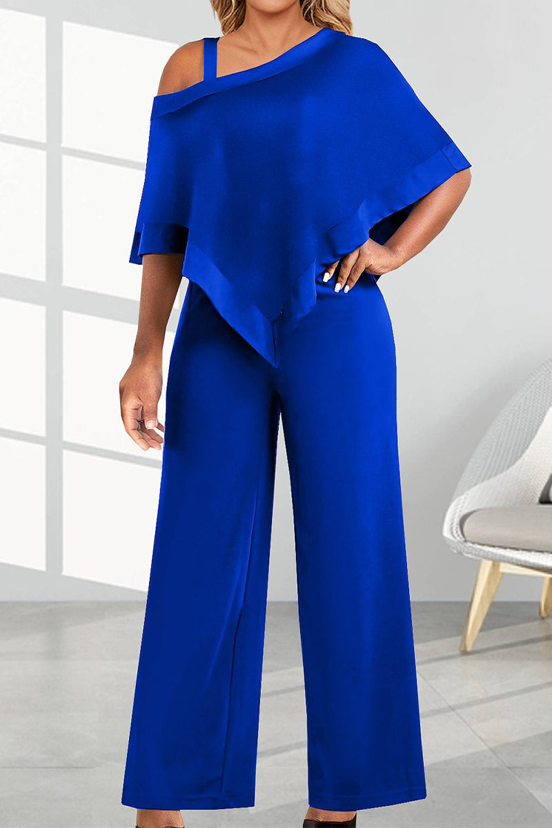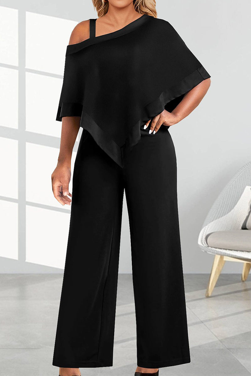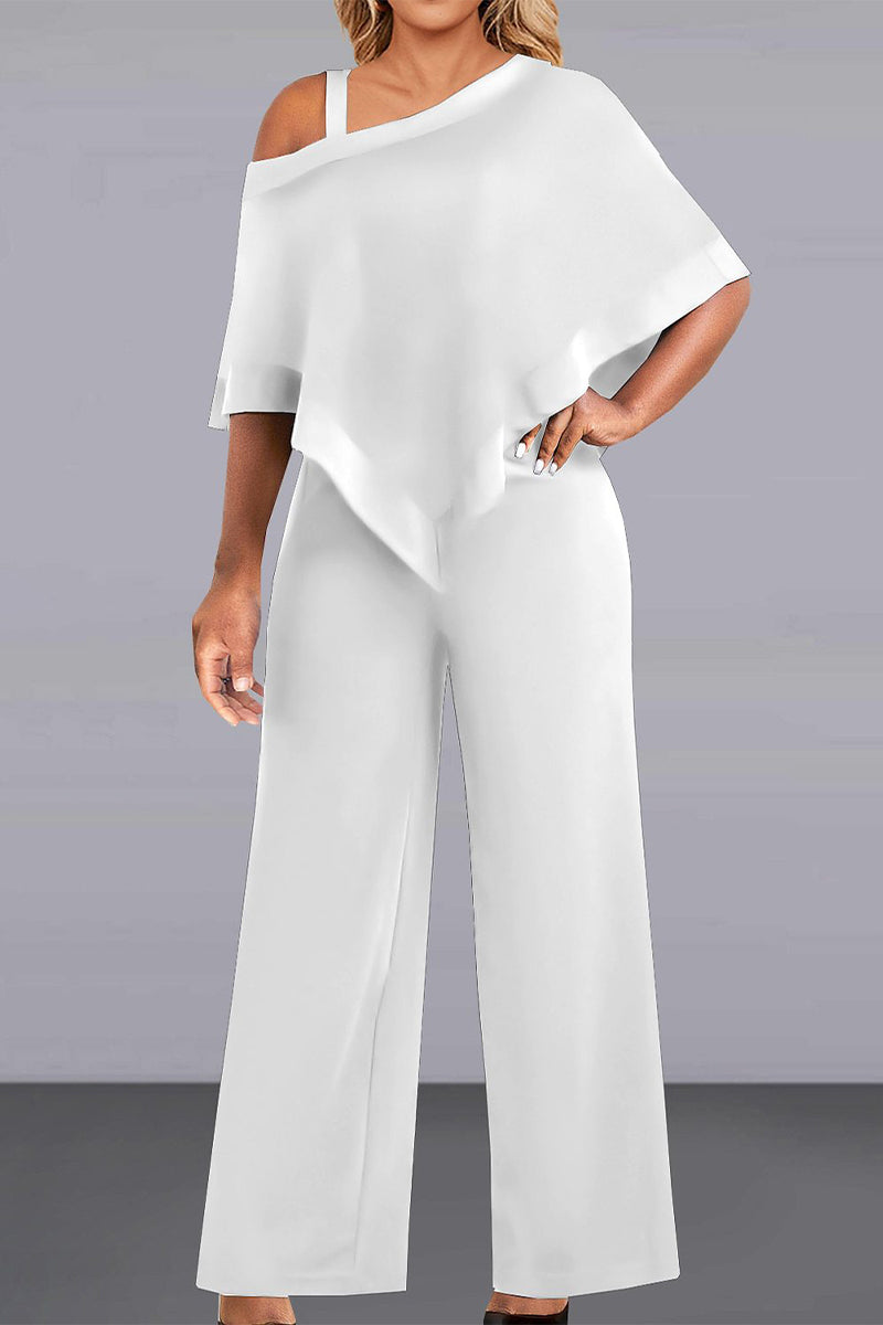 Elegant Solid Patchwork Oblique Collar Loose Jumpsuits