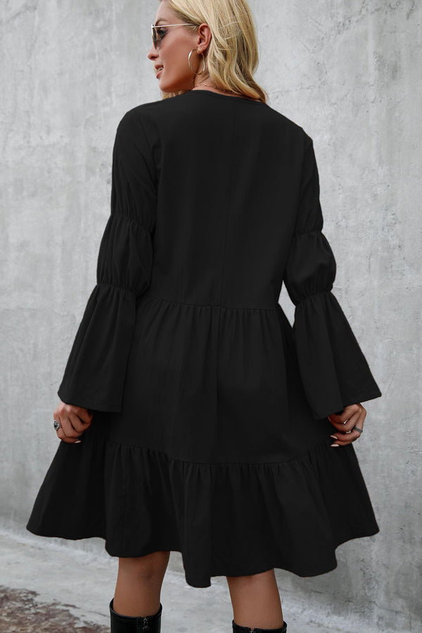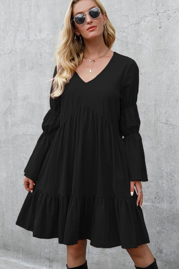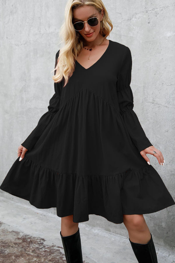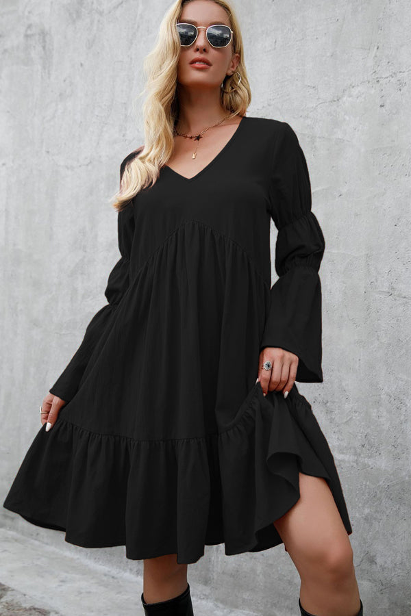 - Fashion Solid Color Long Sleeve Casual Dress