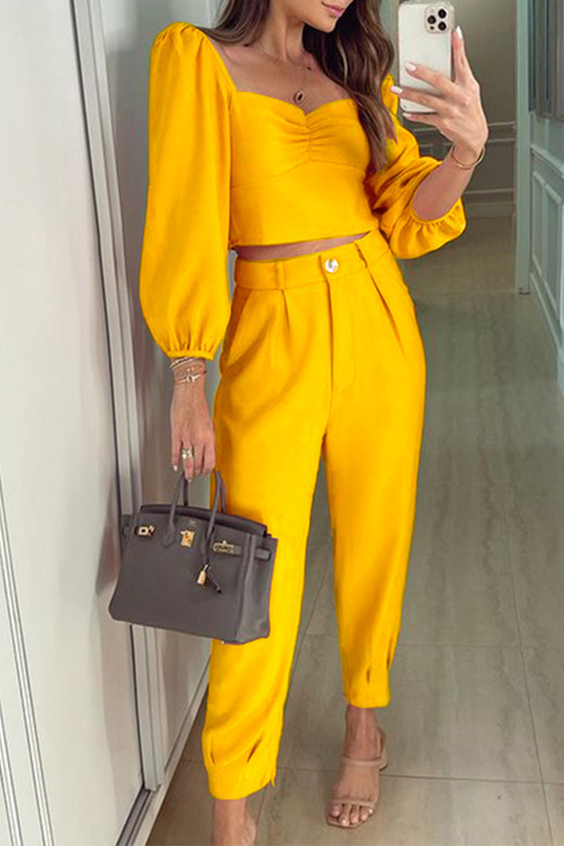 Fashion Solid Patchwork Square Collar Three Quarter Two Pieces