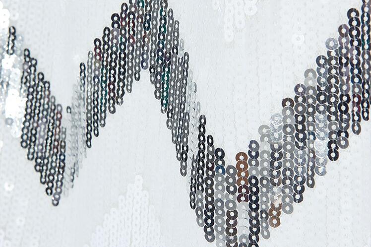 This women's mini dress is a must-have for any girl's wardrobe. This dress features a geometric pattern with sequins. making it perfect for any occasion. The short sleeve and o-neck make this dress perfect for summer and spring.