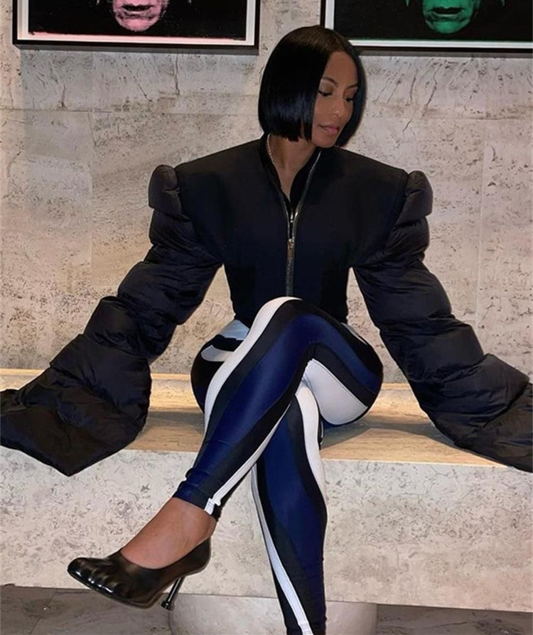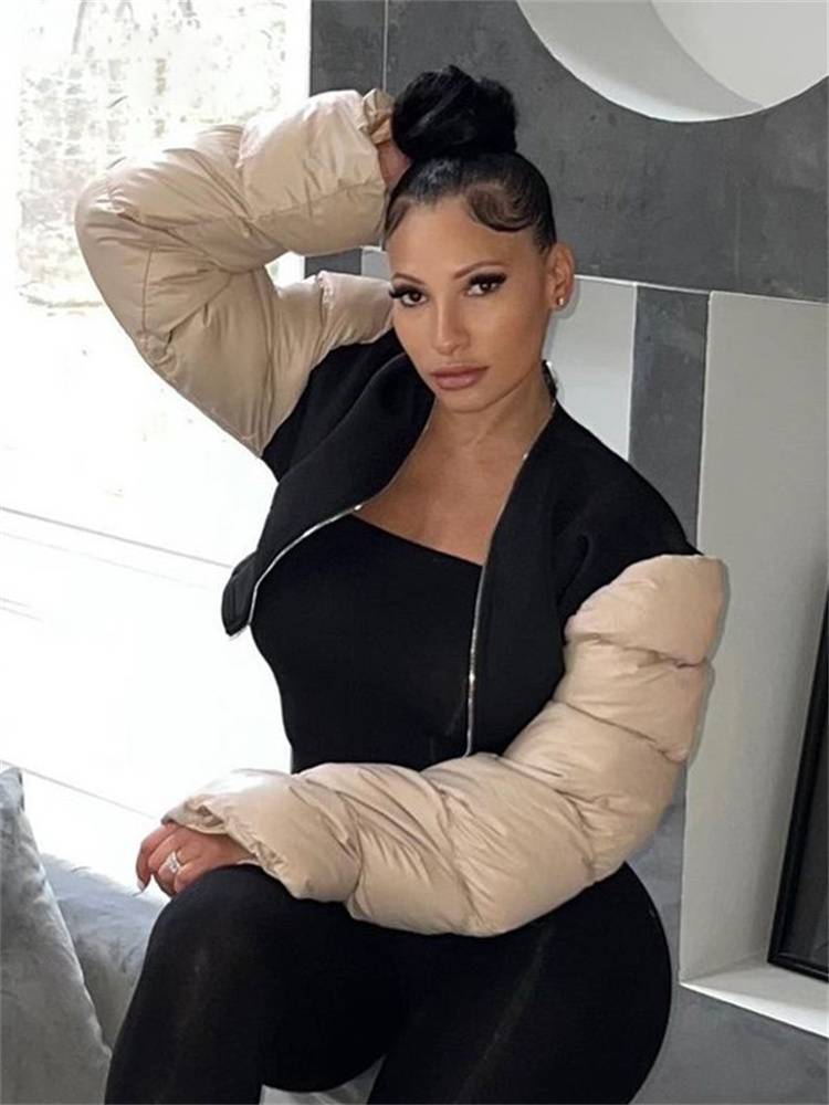 Designed with a stylish patchwork. this women's jacket is a must-have for those looking for a versatile outerwear piece to add to their collection. The long sleeves help keep her warm and comfortable during the colder months. The long sleeves help keep you warm and comfortable during the colder months. The zip-up closure adds convenience. allowing for easy access.