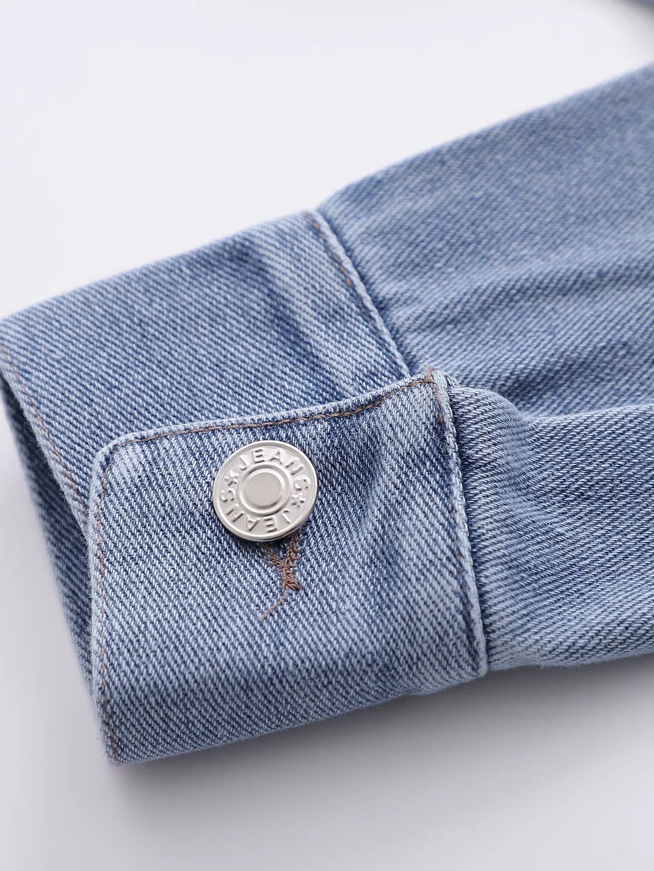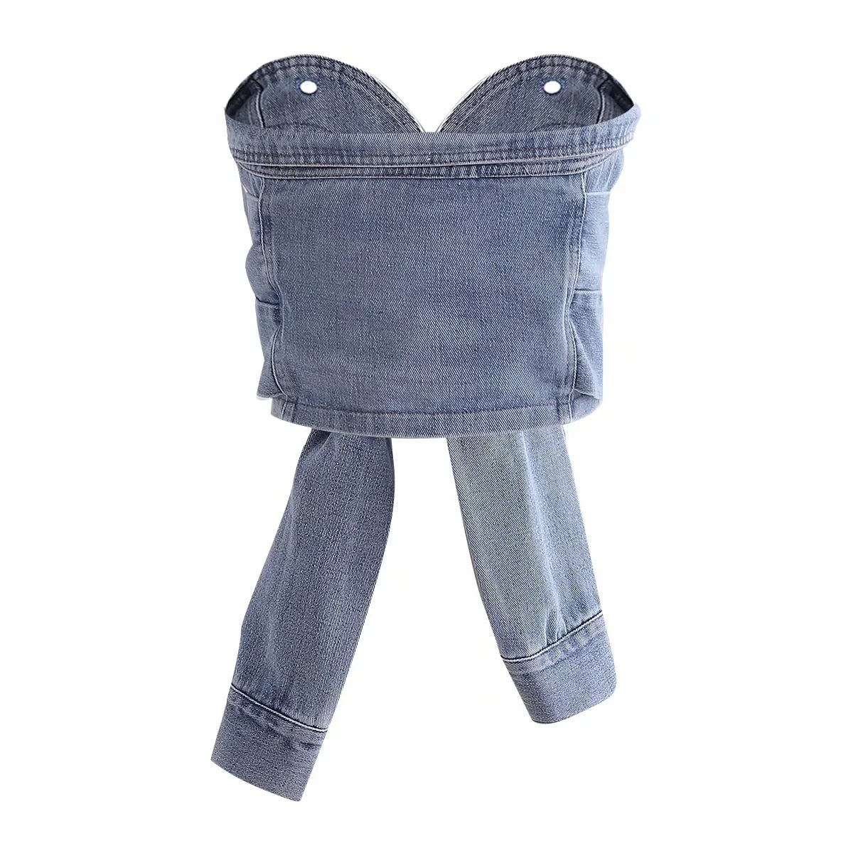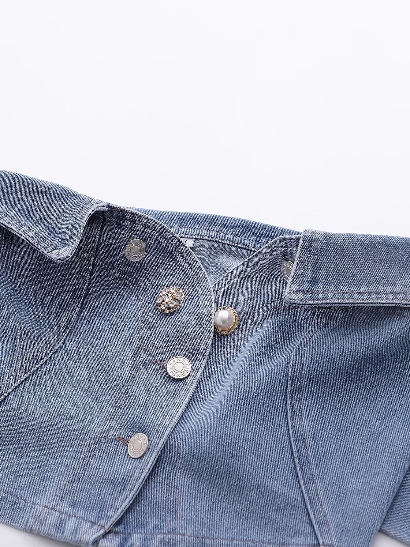 Cotton Denim Crop Top with Fake Sleeve Decoration and Button Closure