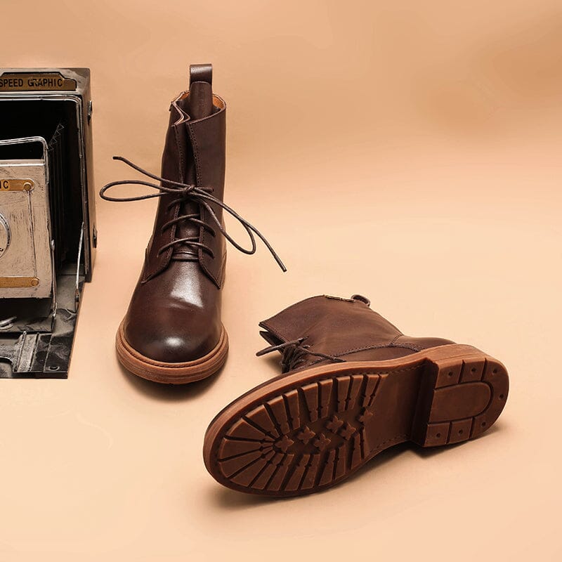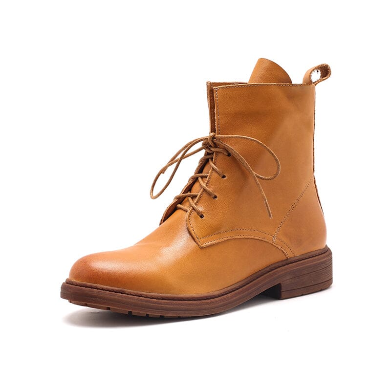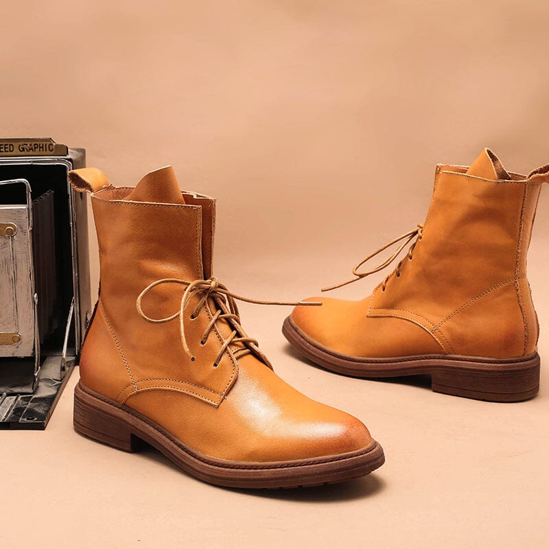 Handmade Genuine Leather Lace Up Derby Ankle Marching Boots Black/Coffee/Brown/Yellow