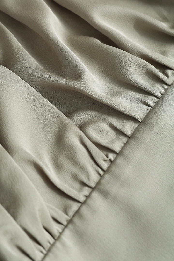 Square Neck V-hem Satin Long Sleeve Top