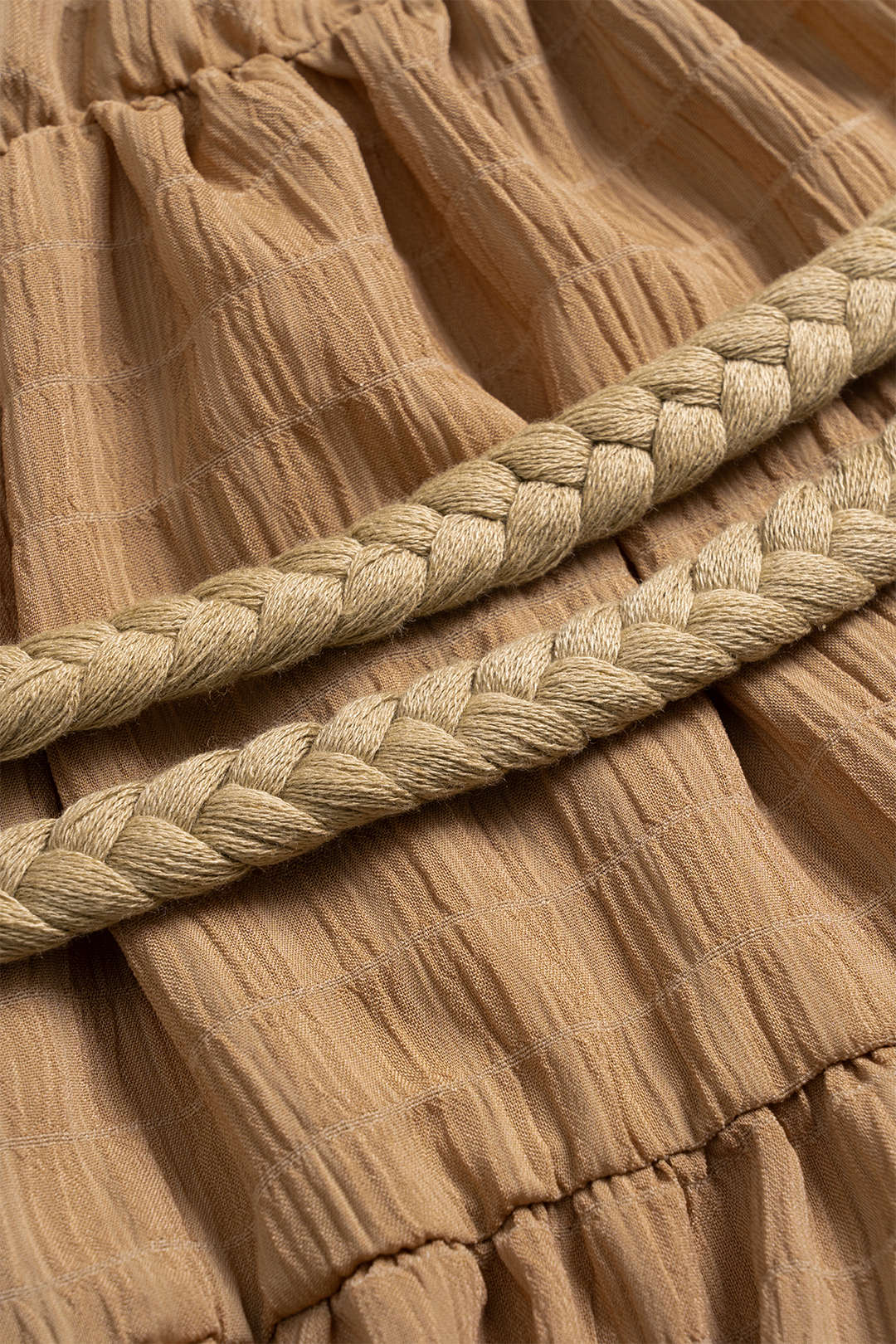 V-Neck Belted Ruched Tie-Up Sleeveless Mini Dress