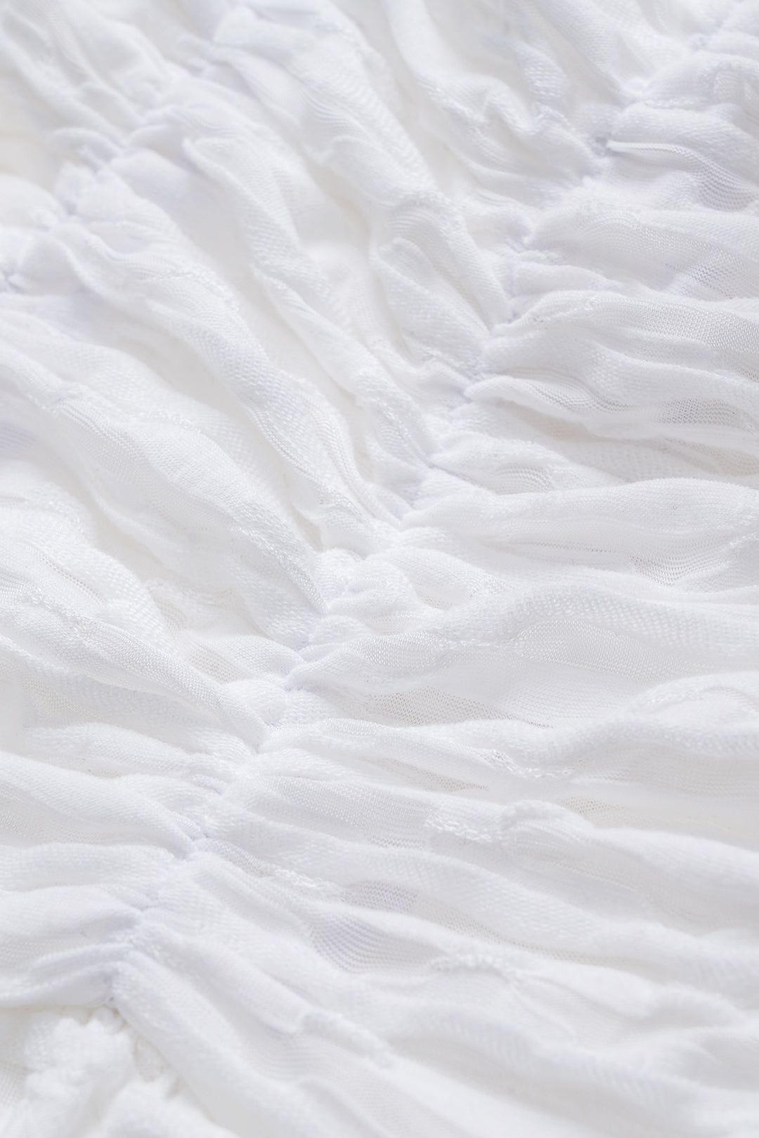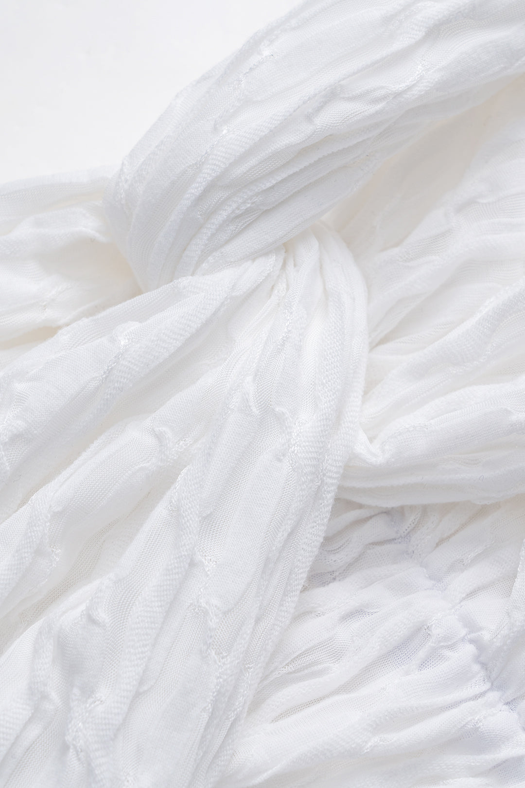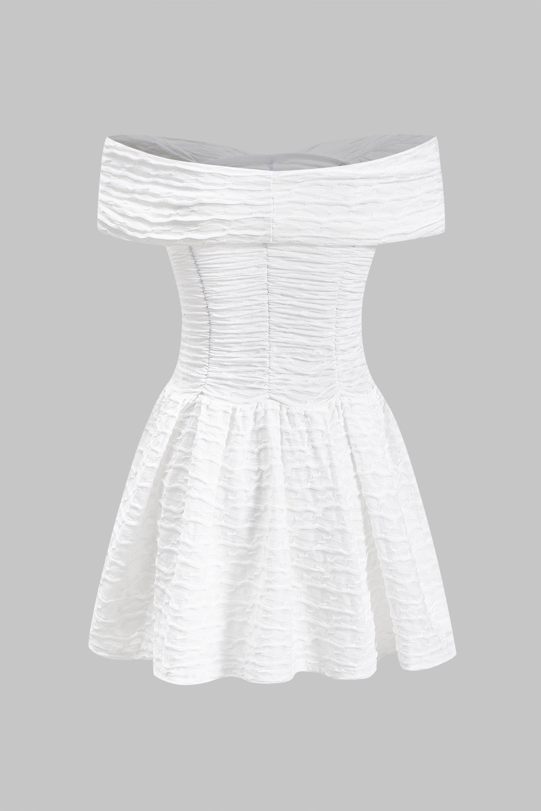Textured Crossed Twist Knot Off Shoulder Mini Dress
