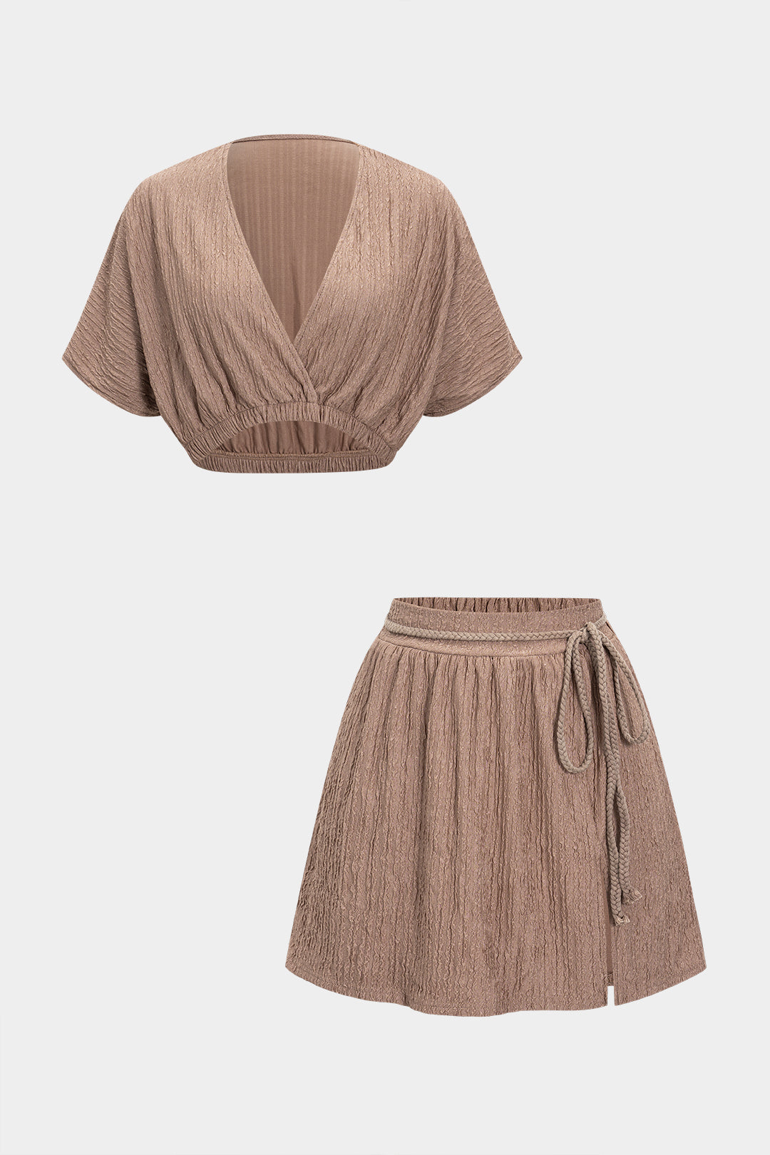 V-Neck Top And Belted Skirt Set