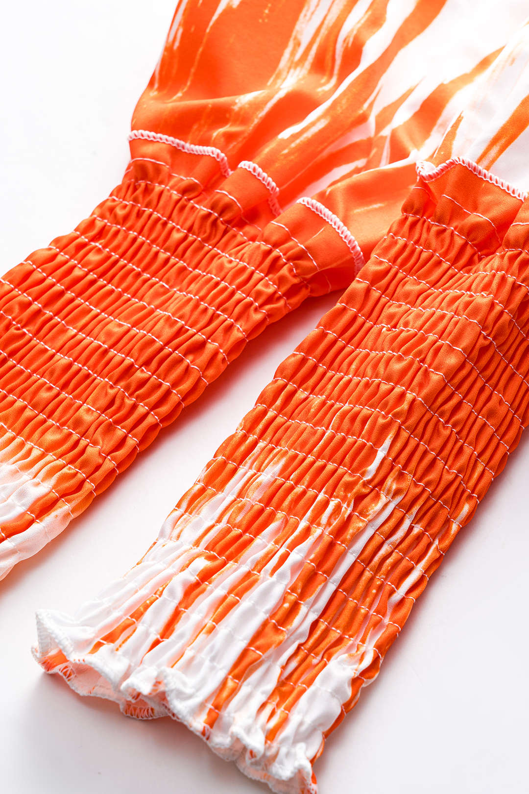 Tropical Pattern Ruffle V-Neck Tie Front Top And Ruched High Waist Wide Leg Pants Set