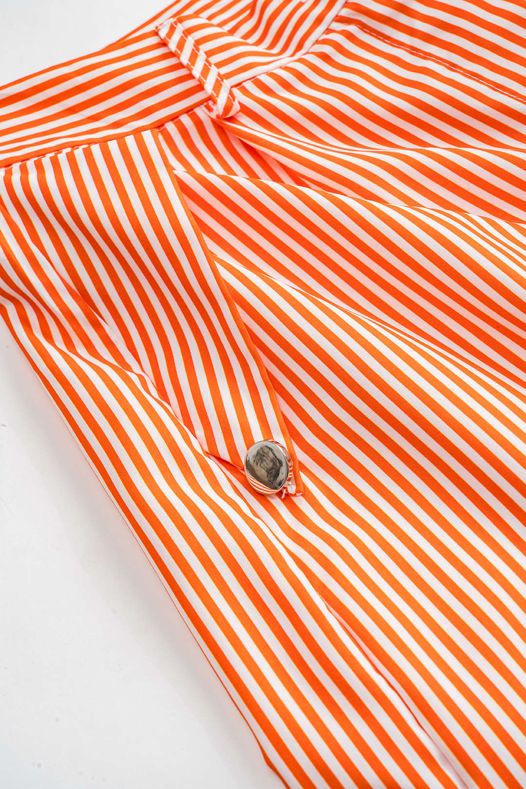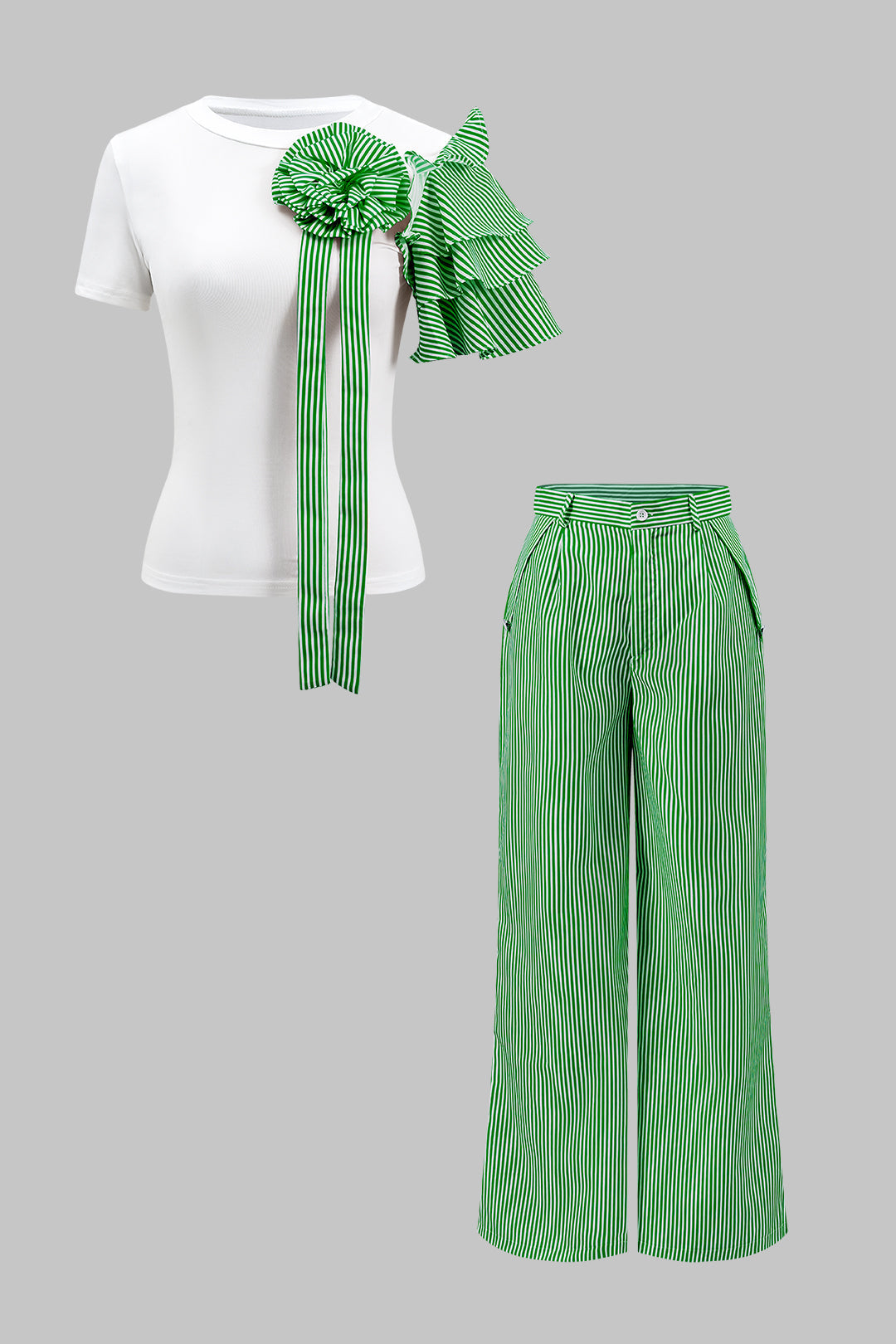 Stripe Print 3D Floral Short Sleeve Top And Button Wide Leg Trousers Set