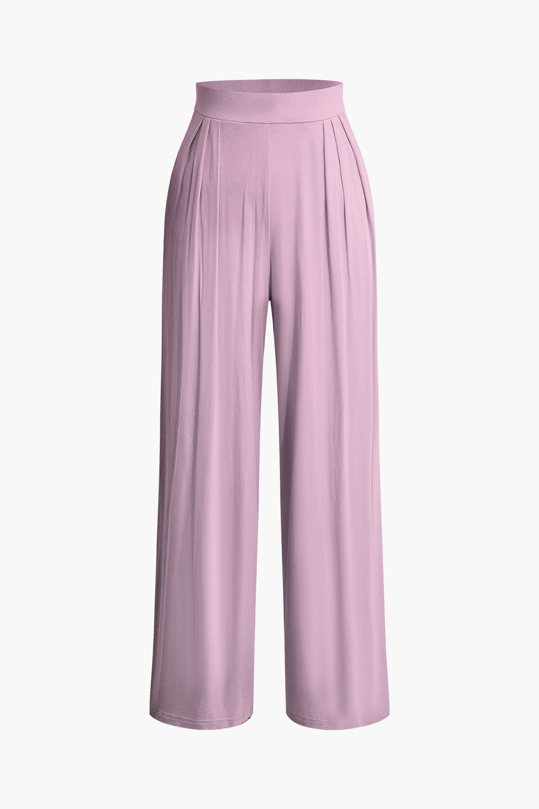 Tie Knot Front Ruched Tube Top And Pleated Wide Leg Pants