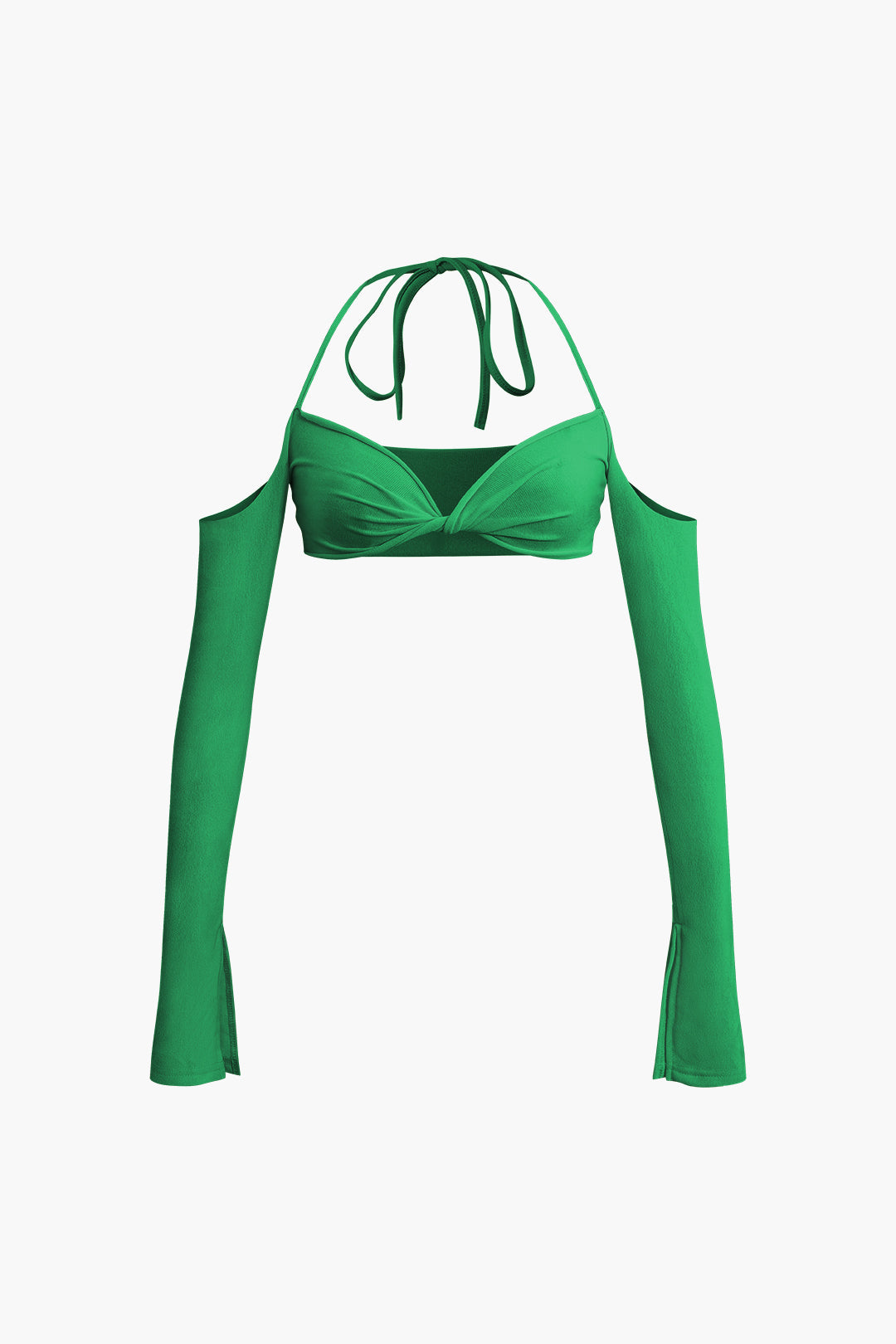 Twist Tie Halter Long Sleeve Bra Top And Maxi Skirt Set