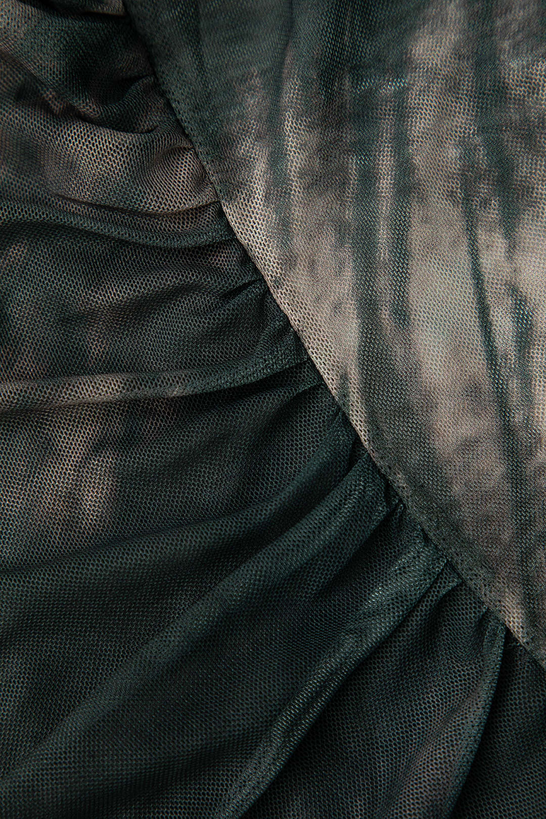 Tie Dye Ruched Mesh Long Sleeve Top