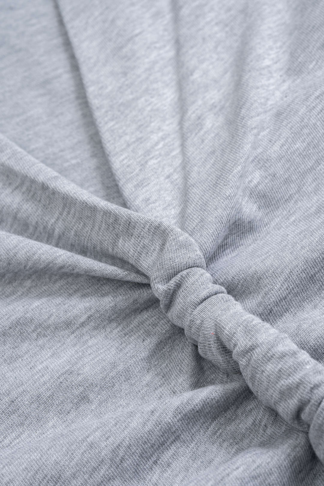V-Neck Ruched Twist Knot Short Sleeve T-Shirt