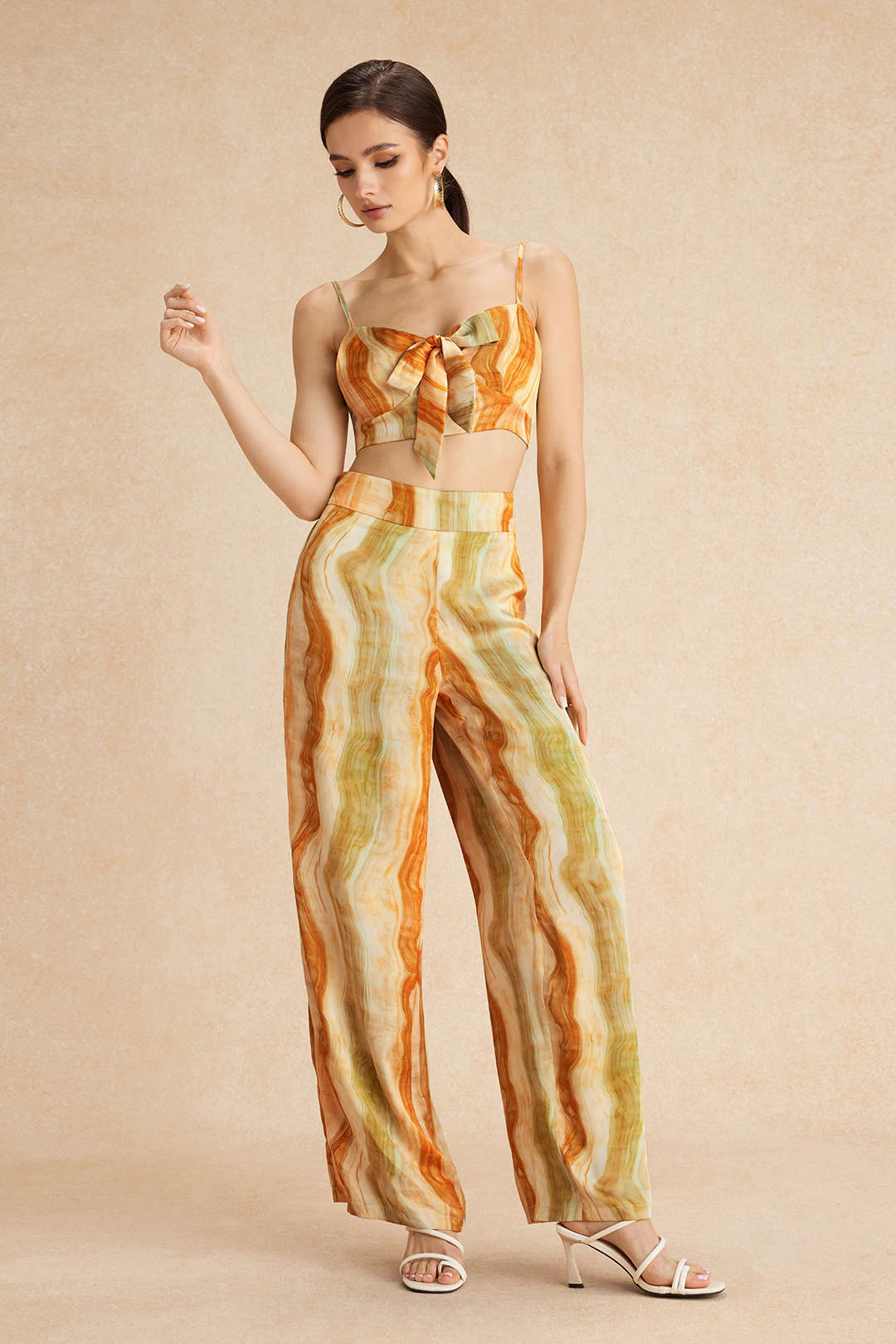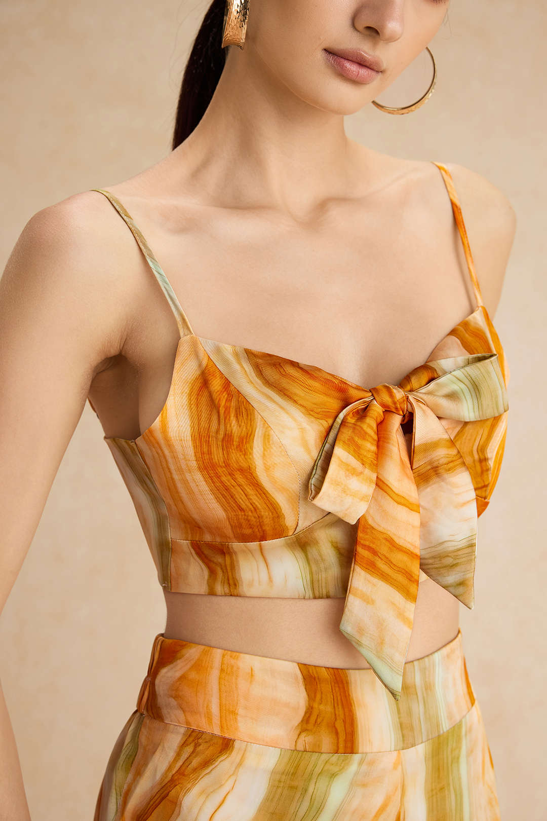 Tie Dye Print Tie Front Slip Cami Top