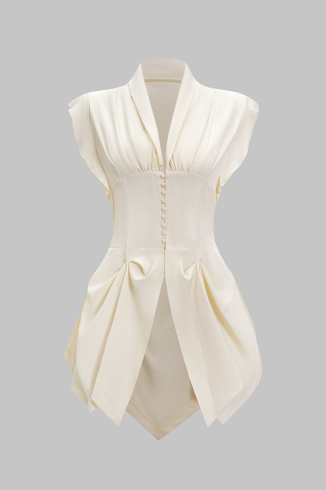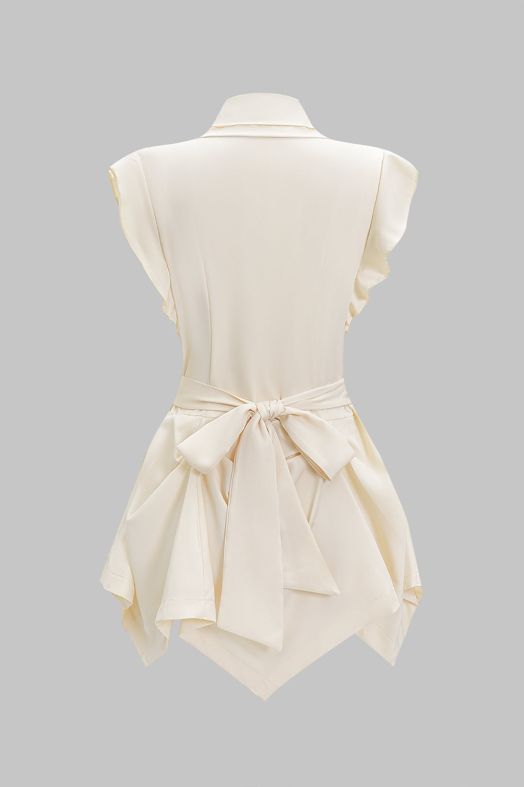 V-Neck Ruched Flutter Sleeve Button Corset Waist Tie-Back Shirt