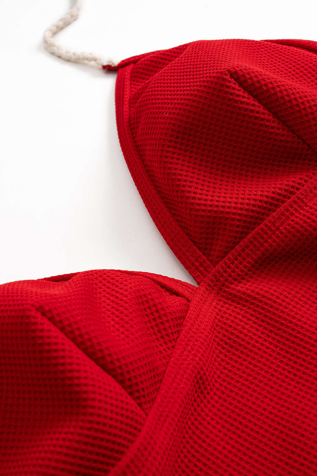 Tie-Back Halter Backless Swimwear And Ruffle Detail Cover Up Set