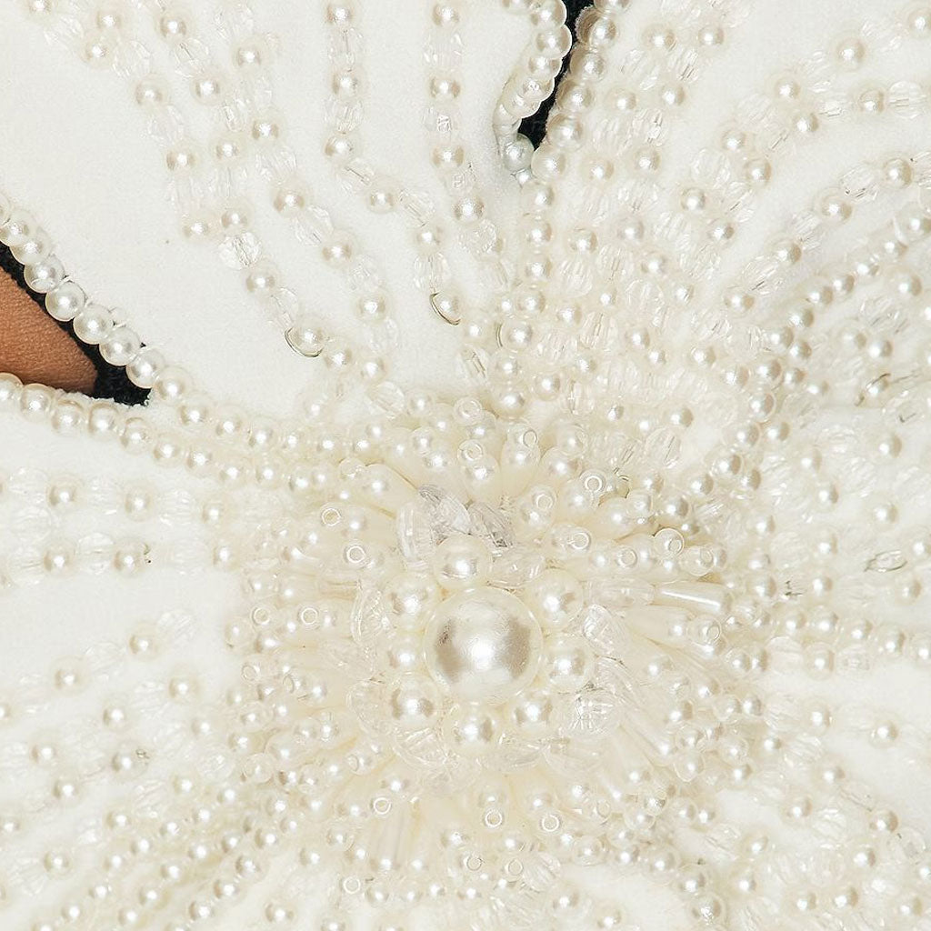 Opulent Pearl FLower One Shoulder Cut Out Waist Winter Midi Cocktail Dress