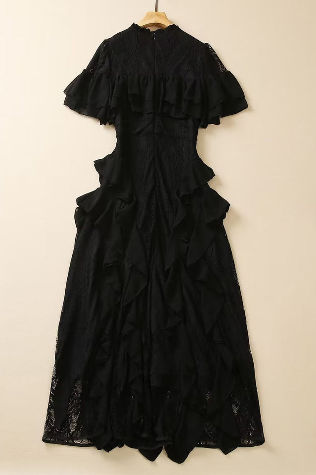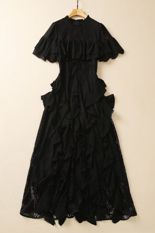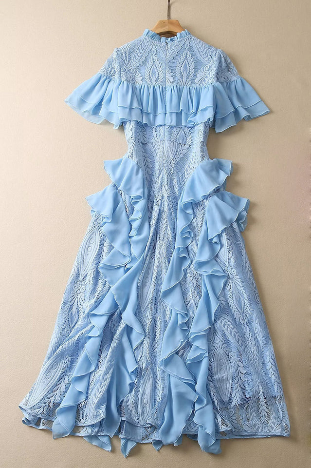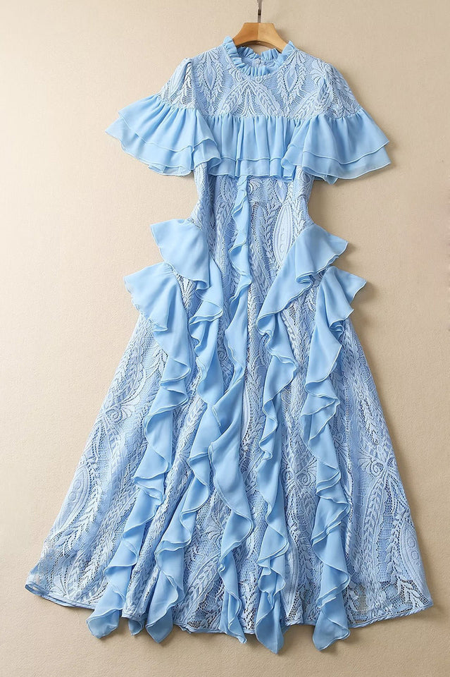 High stretch | Solid color | fuchsia | lace | frill | midi dress | midi sleeve