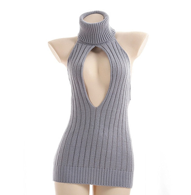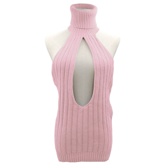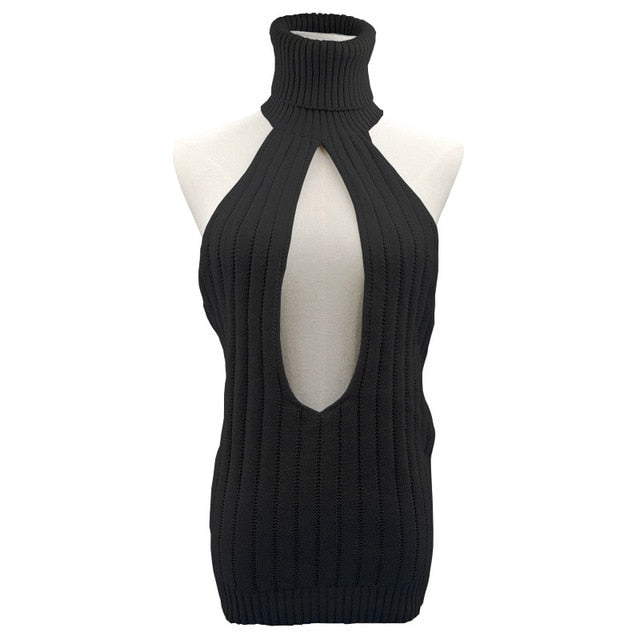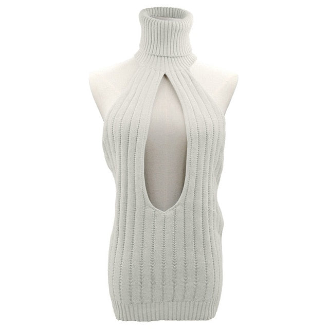 Turtleneck Sweater with Cut Out Decoration and Cotton Polyester Material