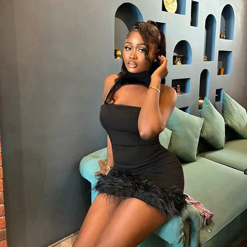 Get ready for a night out in our sexy and club-worthy "Pages Between Us" mini dress. Featuring a trendy O-neckline and flirty feather and hollow out details. this dress will make you stand out. Made from a comfortable cotton and polyester blend. it's also perfect for dancing the night away.