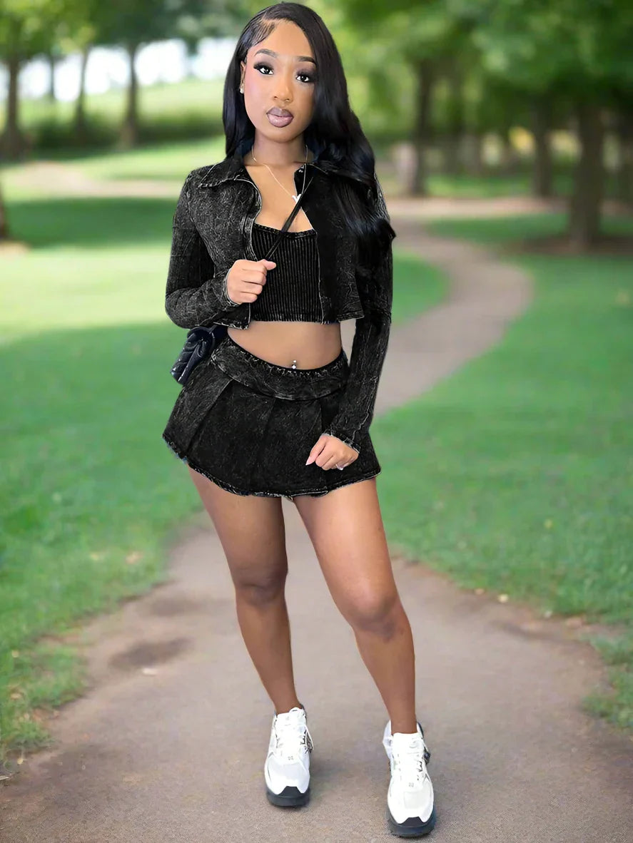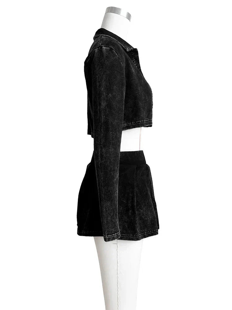 Unleash your inner artist with our Paint The Sky Skirt Set! Made with a blend of spandex and polyester. this set features a turn-down collar and solid color pattern. Express yourself and turn heads with this stylish and comfortable outfit.