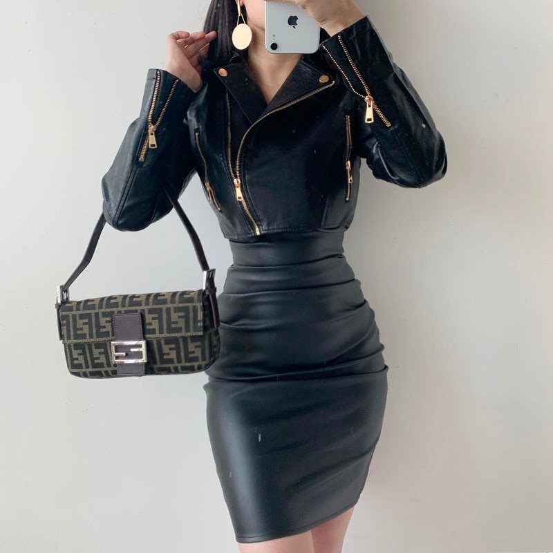 This gorgeous jacket is the perfect item for anyone looking for a stylish new addition to their wardrobe. It features a faux leather exterior with a solid black color. long sleeves. and zippers on the front. It is perfect for pairing with jeans. a cute dress. or leggings.