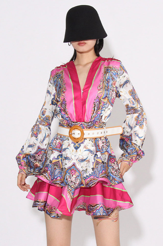This Paisley Print V-Neck Mini Dress With Belt is a stunning blend of vintage-inspired charm and contemporary style. Adorned with a captivating paisley print. this mini dress exudes bohemian flair and timeless elegance. The V-neckline adds a touch of allure. while the mini length silhouette offers a youthful and playful vibe. Included with the dress is a chic belt that cinches the waist. creating a flattering and feminine silhouette. Whether you're strolling through a summer festival or attending a casual brunch. this dress is sure to make a statement.