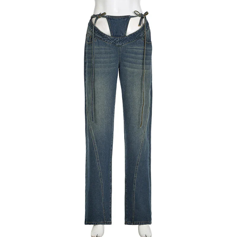 Crafted with a mix of cotton and polyester. our Paths We Create Straight Jeans provide comfort and slight stretch for a flattering fit. The full-length design and regular fit make them perfect for any occasion. The lace-up decoration adds a touch of unique style.