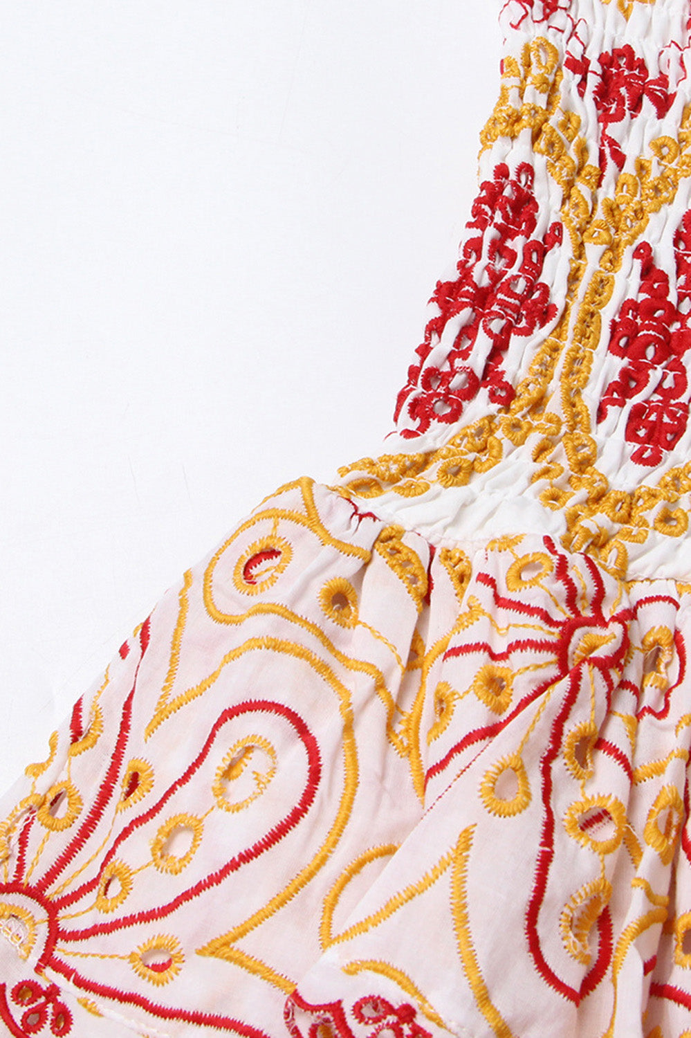 Look your best in this strapless mini dress. featuring intricate embroidery and playful ruffles. Made with a cotton and polyester blend. it guarantees a comfortable and flattering fit for any occasion. Make a statement with this on-trend style.