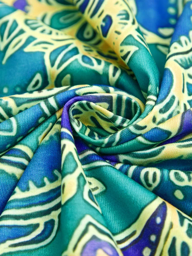Round Neck Ombre Paisley Boho Vintage Midi Dresses