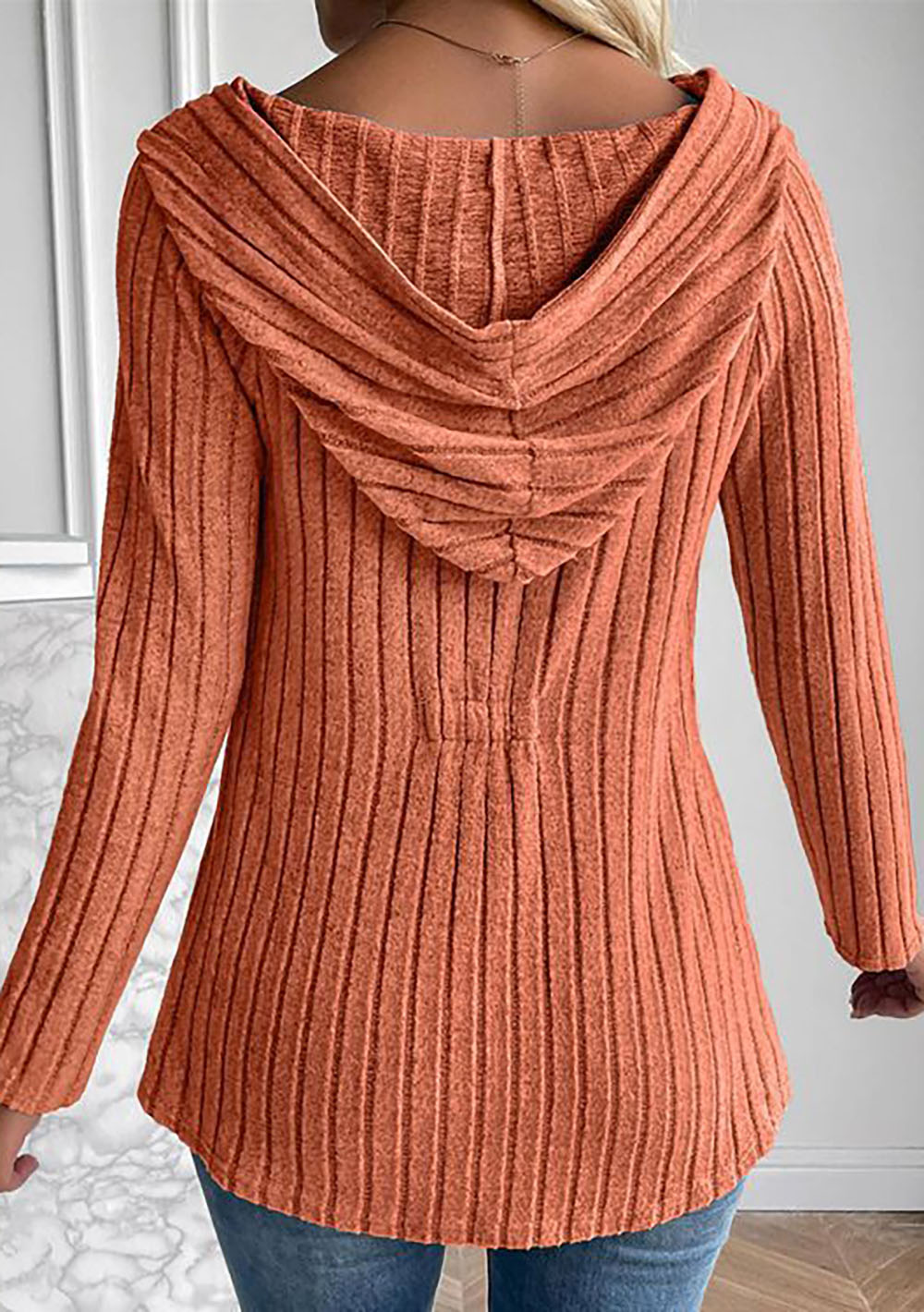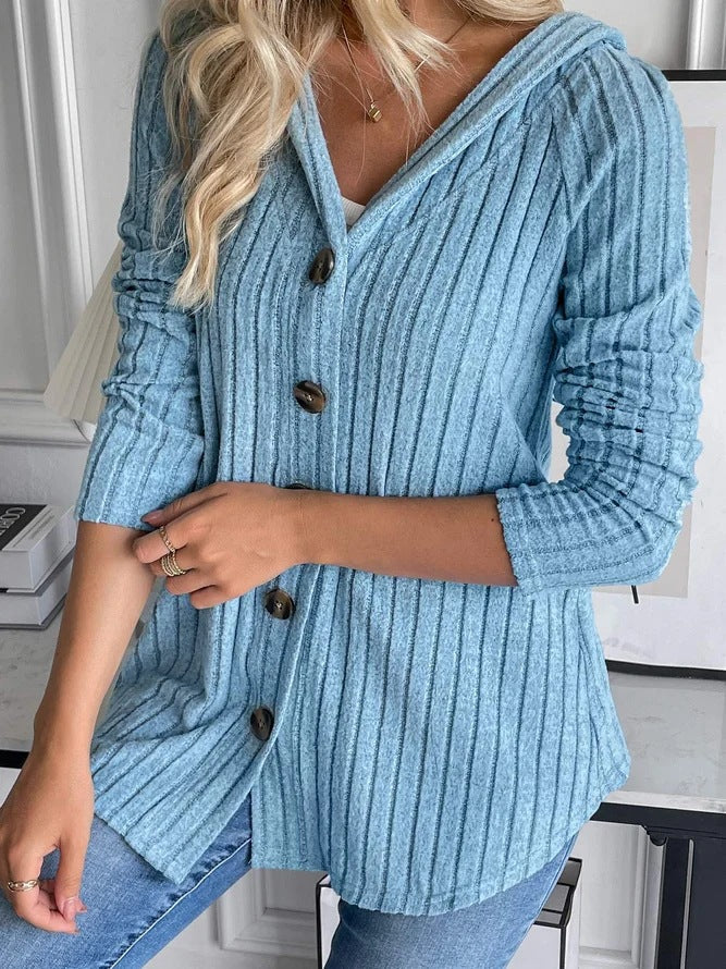 Solid color button hooded knit sweatshirt