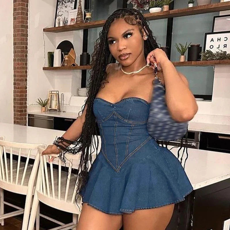Elevate your style with the Untake This Heart Mini Dress! Perfect for any occasion. this strapless dress features flattering draping and hits above the knee for a flirty look. Made with a blend of cotton. polyester. and denim. you'll be both comfortable and stylish in this must-have dress.