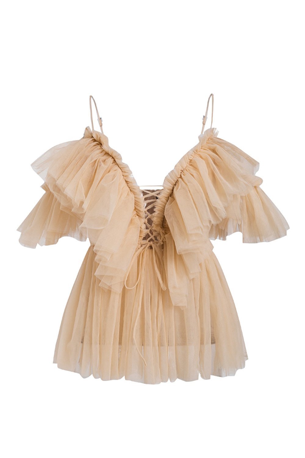 V Neck Strap Boho Mesh Blouse Shirt