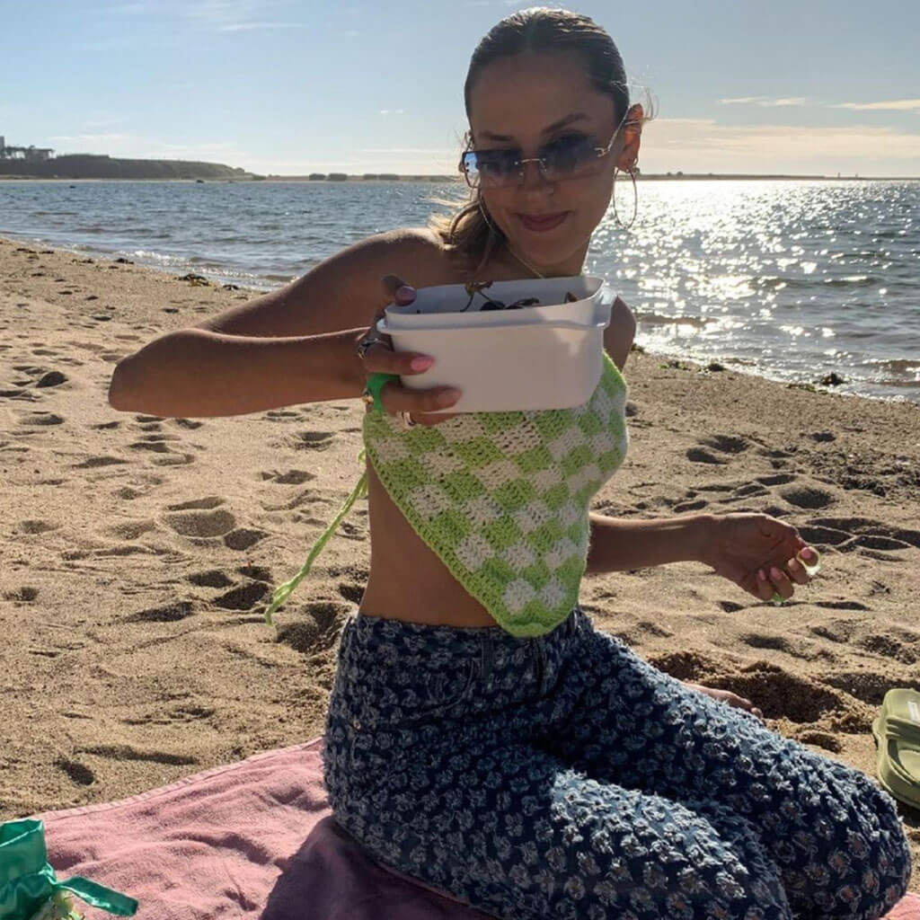 Vacation Ready Plaid Panel Backless Knitted Halter Top - Green